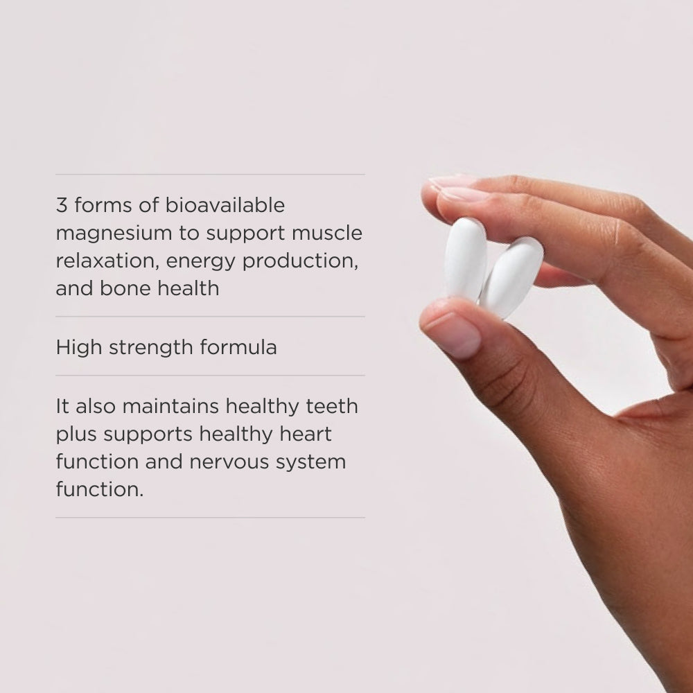 - General Well-being: Magnesium supports nervous system health and function, helps healthy heart function, and maintains bone health, bone density, and healthy teeth. It assists healthy body metabolism, and healthy bone development and growth.